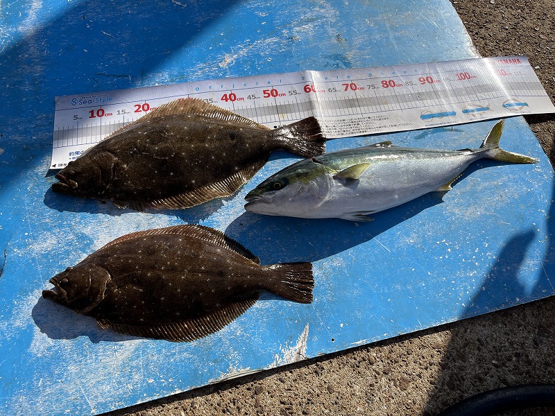 釣果:ヒラメ ~58cm、メジロ ~70cm