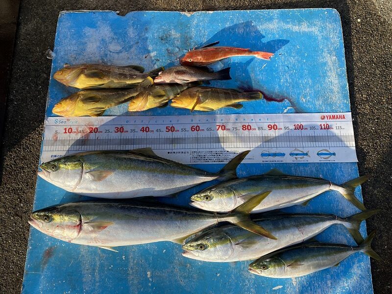 釣果:ブリ ~87cm、アオハタ ~40cm、オオモンハタ ~30cm、ホウボウ ~30cm