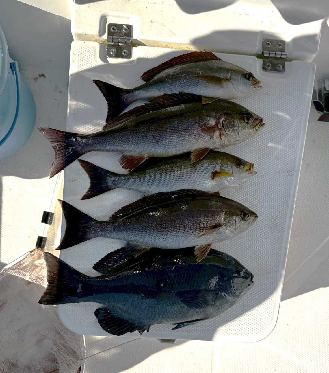 釣果情報【11/17追加】 釣果情報 2025.11.17 11月17日の釣果情報を追加で頂きました! 船名:ak丸 釣果:イサギ ~40cm、グレ 40cm、ヤイトガツオ 50cm(写真無し) ポイント:アシカ 仕掛け:完全フカセ 食べきれない分はリリースする好調な釣行を楽しまれたそうです! 皆さん釣果情報のご提供ありがとうございます!