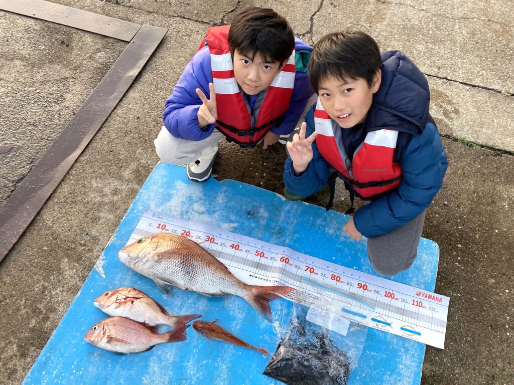 釣果:マダイ ~65cm、ホウボウ、アオリイカ