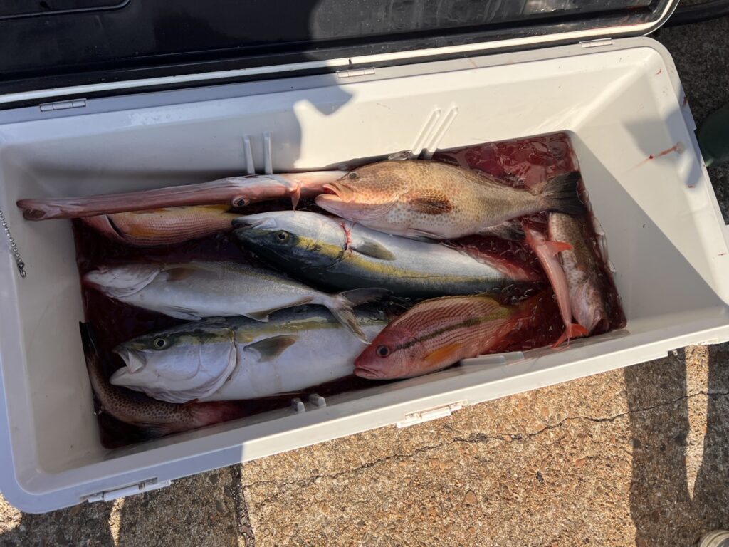 釣果:メジロ、オオモンハタ、アカヤガラ、ヨコスジフエダイ