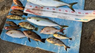 釣果情報 釣果情報【12/19】 2025.12.19 天気:晴れ / 大潮 釣果:ブリ ~85cm、オオモンハタ ~40cm、カンパチ ~45cm、マダイ 35cm、アオハタ 30cm、アカハタ 25cm ポイント:日ノ岬沖 仕掛け:ジグ 船... 2025.12.19 釣果情報