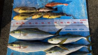 2025.12.19 天気:晴れ / 大潮 釣果:ブリ ~85cm、オオモンハタ ~40cm、カンパチ ~45cm、マダイ 35cm、アオハタ 30cm、アカハタ 25cm ポイント:日ノ岬沖 仕掛け:ジグ 船...